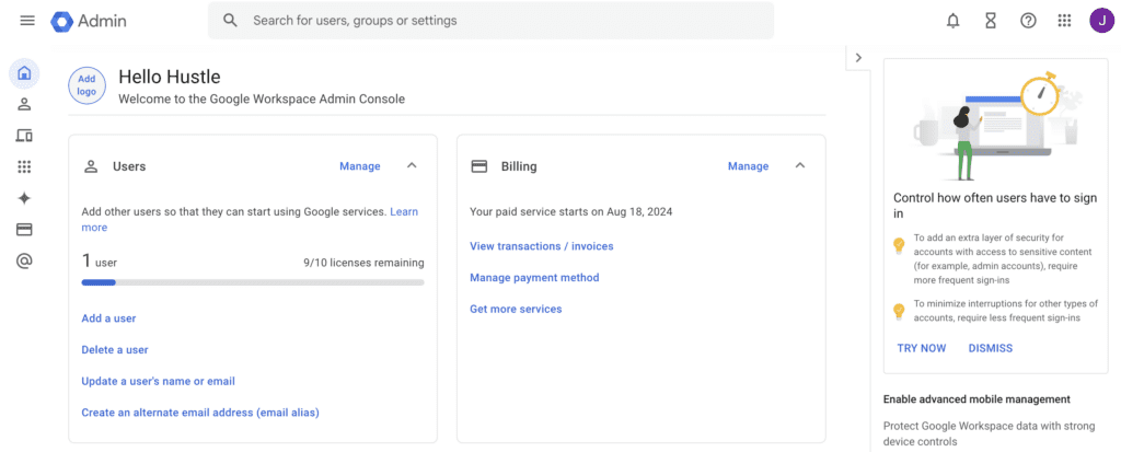 First, just head over to Google Workspace and click Start A Trial (after you’re signed up, you can just go to Admin Console).